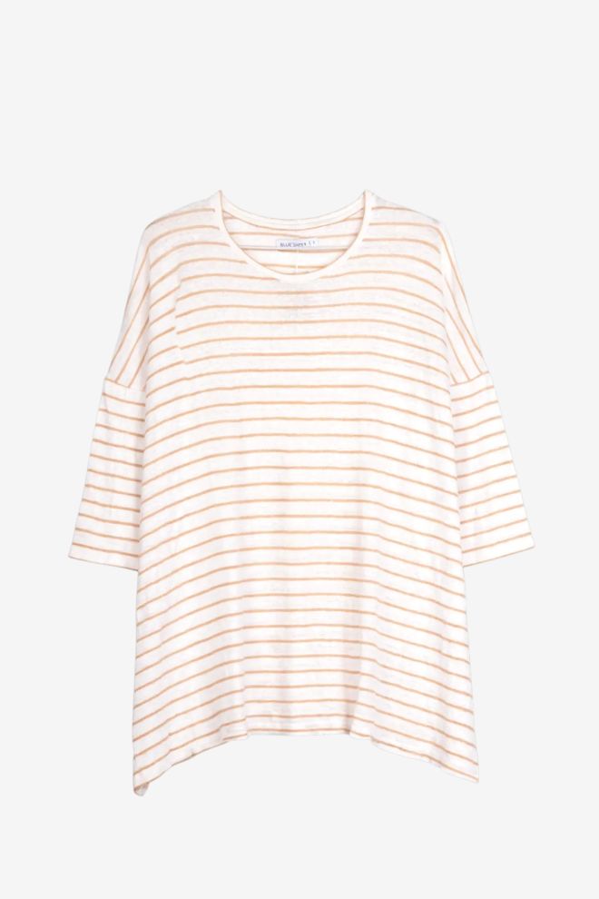 Corte oversize. Tela elastizada. Talle de etiqueta/internacional: 1. Composición: 85% lino, 10% viscosa y 5% elastano. Ancho: 56 cm, Largo: 64 cm | Los talles pueden variar por el calce o moldería de las marcas. Los talles expresados son los de etiqueta.