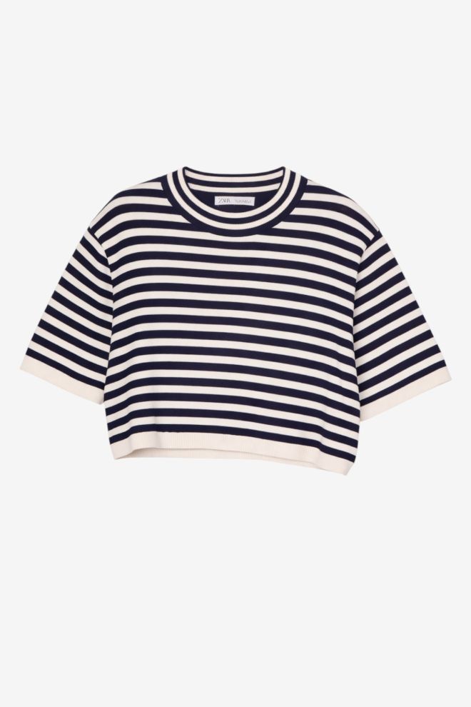 Corte boxy. Tela rígida. Talle de etiqueta/internacional: S. Composición: 65% viscosa y 35% poliamida. Ancho: 52 cm, Largo: 38 cm | Los talles pueden variar por el calce o moldería de las marcas. Los talles expresados son los de etiqueta.