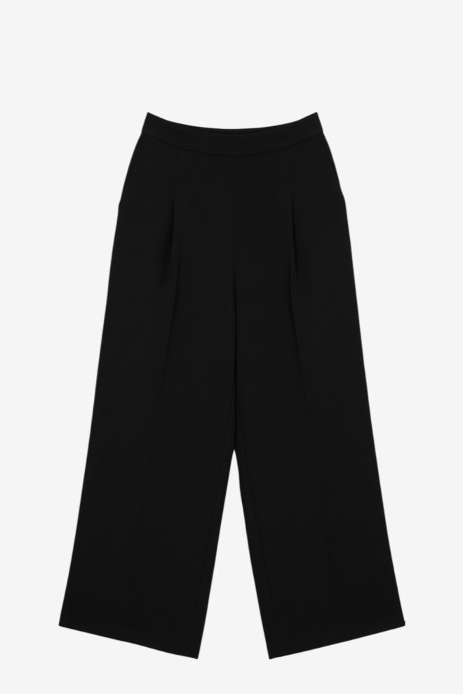Talle alfabético: Small. Talle de etiqueta: S. Tiro alto. Corte palazzo. Tela rígida. Cintura con elastico parte trasera: 36 cm. Cadera: 50 cm. |El calce puede variar por el tipo de corte. Los talles están convertidos a su equivalente en la tabla de talles de Europa.