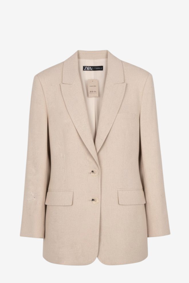 Corte regular. Tela rígida. Talle de etiqueta/internacional: 2. Composición: 50% lino y otros. Ancho: 56 cm, Largo: 78 cm | Los talles pueden variar por el calce o moldería de las marcas. Los talles expresados son los de etiqueta.