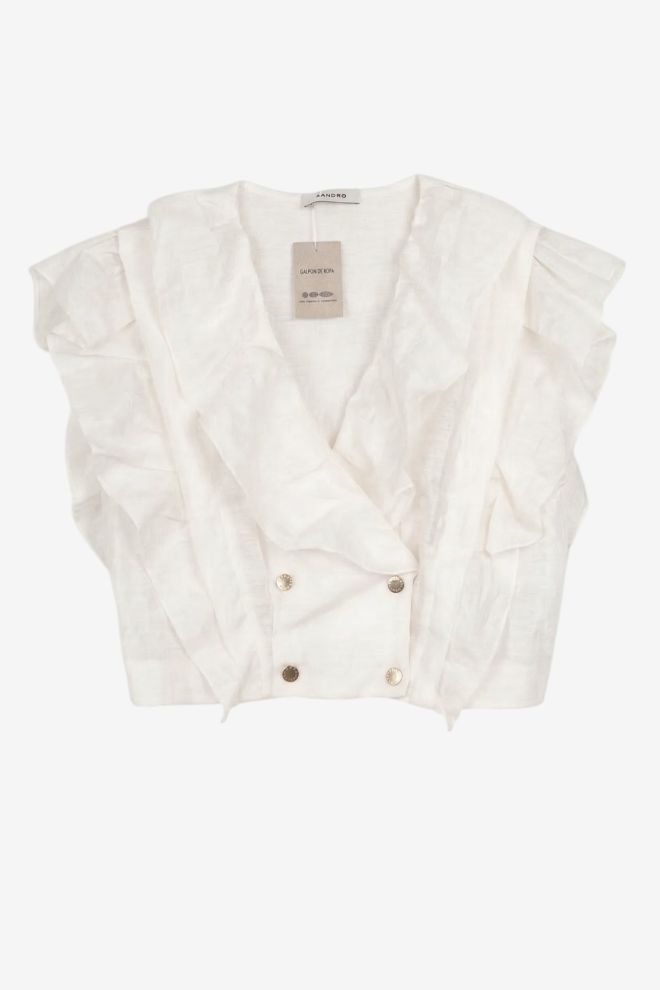 Top. Tela rígida. Talle de etiqueta/internacional: 1. Composición: 86% lino y otros. Ancho: 40 cm, Largo: 38 cm | Los talles pueden variar por el calce o moldería de las marcas. Los talles expresados son los de etiqueta.