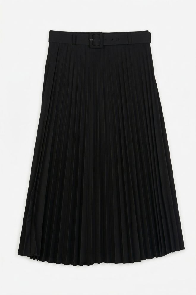 Talle alfabético: Medium. Talle de etiqueta: M. Tiro alto. Corte en A. Tela rígida. Cintura: 34 cm. Cadera: 52 cm. | El calce puede variar por el tipo de corte. Los talles están convertidos a su equivalente en la tabla de talles de Europa.