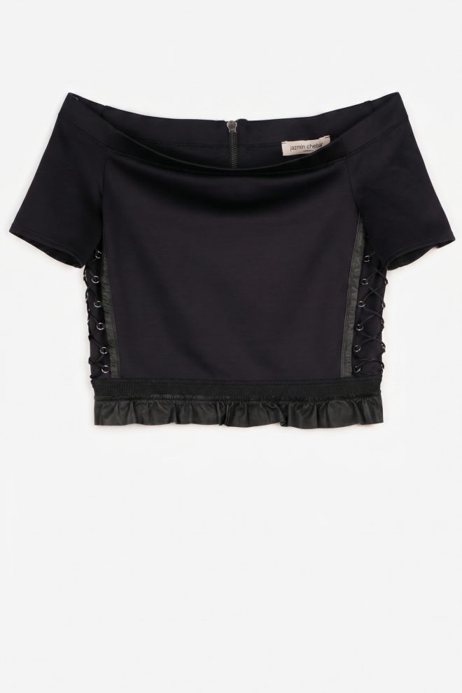 Top. Tela elastizada. Talle de etiqueta/internacional: 1/38-40. Composición: 93% poliamida y otros. Ancho: 38 cm, Largo: 35 cm | Los talles pueden variar por el calce o moldería de las marcas. Los talles expresados son los de etiqueta.