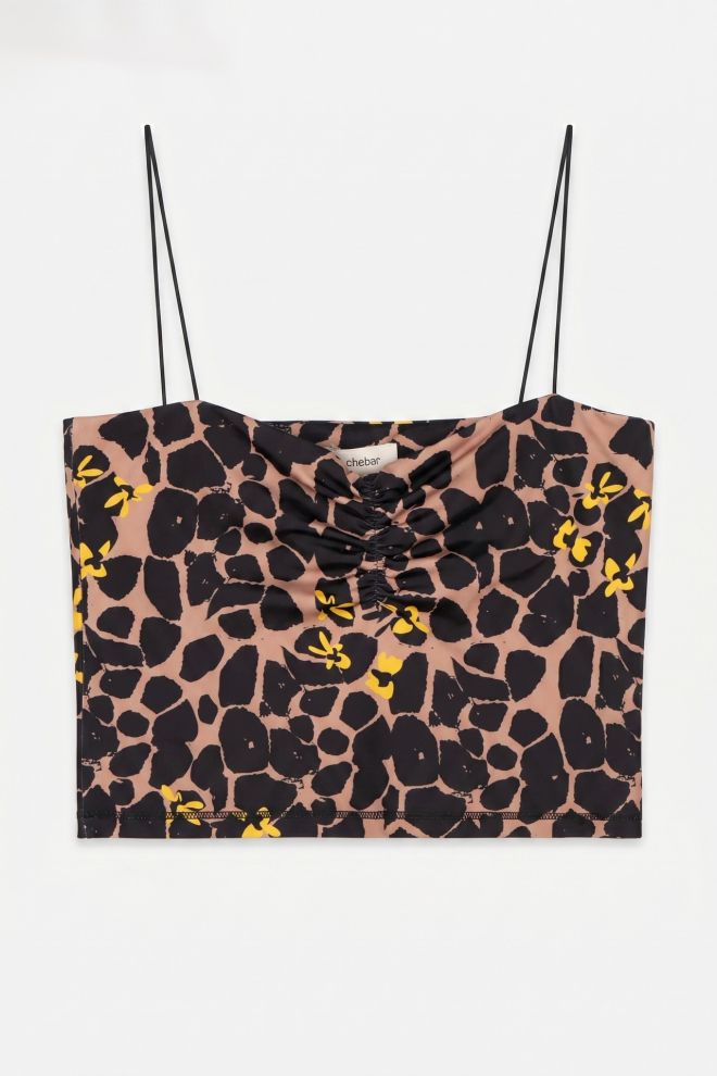 Top. Tela elastizada. Talle de etiqueta/internacional: 1/38-40. Composición: 90% poliéster y otros. Ancho: 34 cm, Largo: 24 cm | Los talles pueden variar por el calce o moldería de las marcas. Los talles expresados son los de etiqueta.