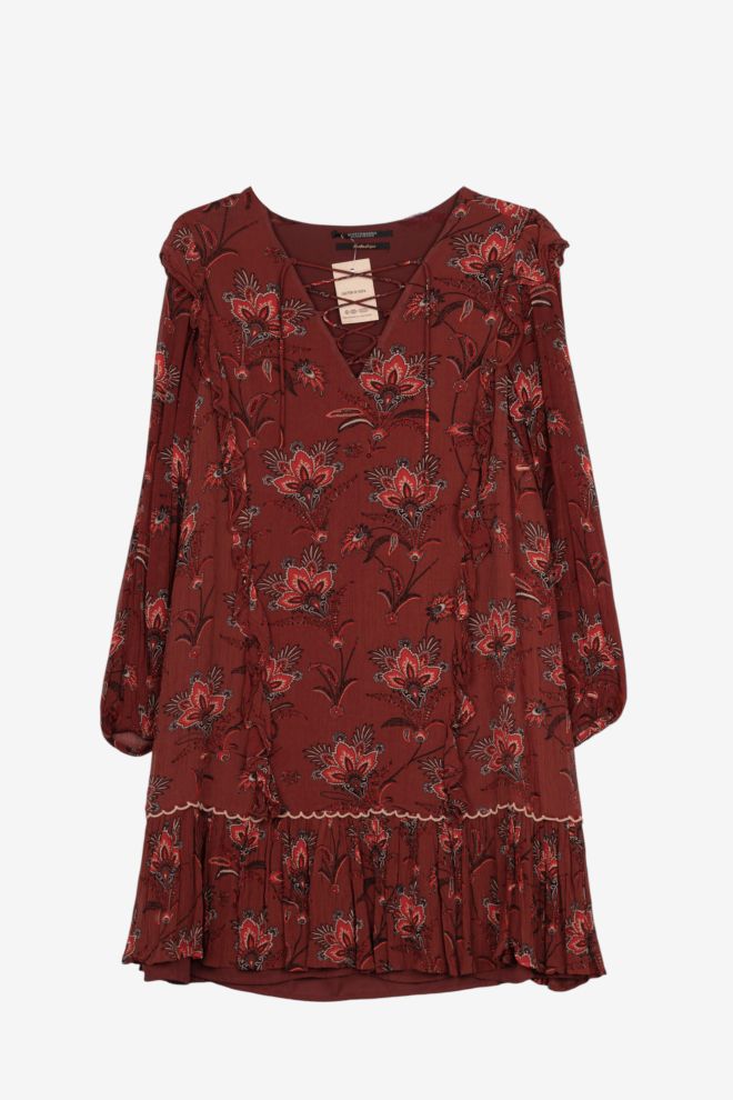 Corte regular. Tela rígida. Talle de etiqueta/internacional: XS. Ancho: 46 cm, Largo: 84 cm | Los talles pueden variar por el calce o moldería de las marcas. Los talles expresados son los de etiqueta.