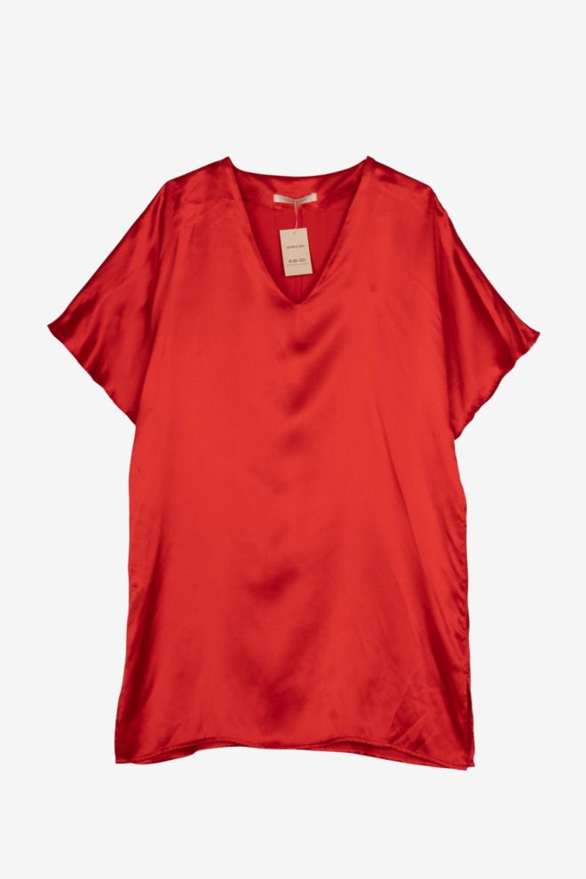 Corte recto. Tela rígida. Talle de etiqueta/internacional: 44. Composición: 100% seda. Ancho: 52 cm, Largo: 80 cm | Los talles pueden variar por el calce o moldería de las marcas. Los talles expresados son los de etiqueta.