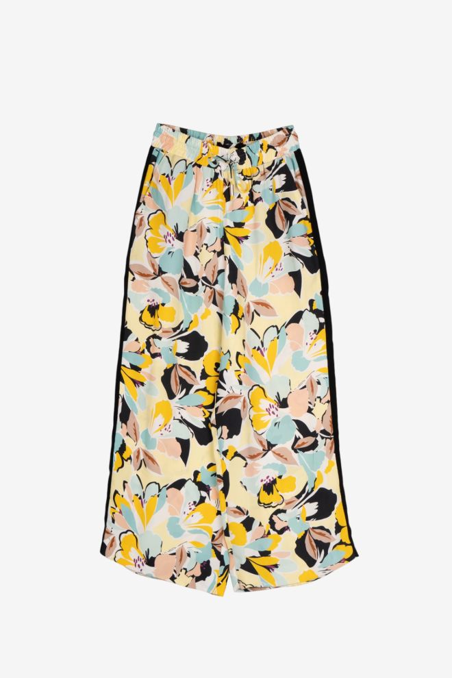Talle alfabético: Small. Talle de etiqueta: 38/1. Tiro alto. Corte palazzo. Tela rígida. Cintura con elastico: 32 cm. Cadera: 46 cm. |El calce puede variar por el tipo de corte. Los talles están convertidos a su equivalente en la tabla de talles de Europa.