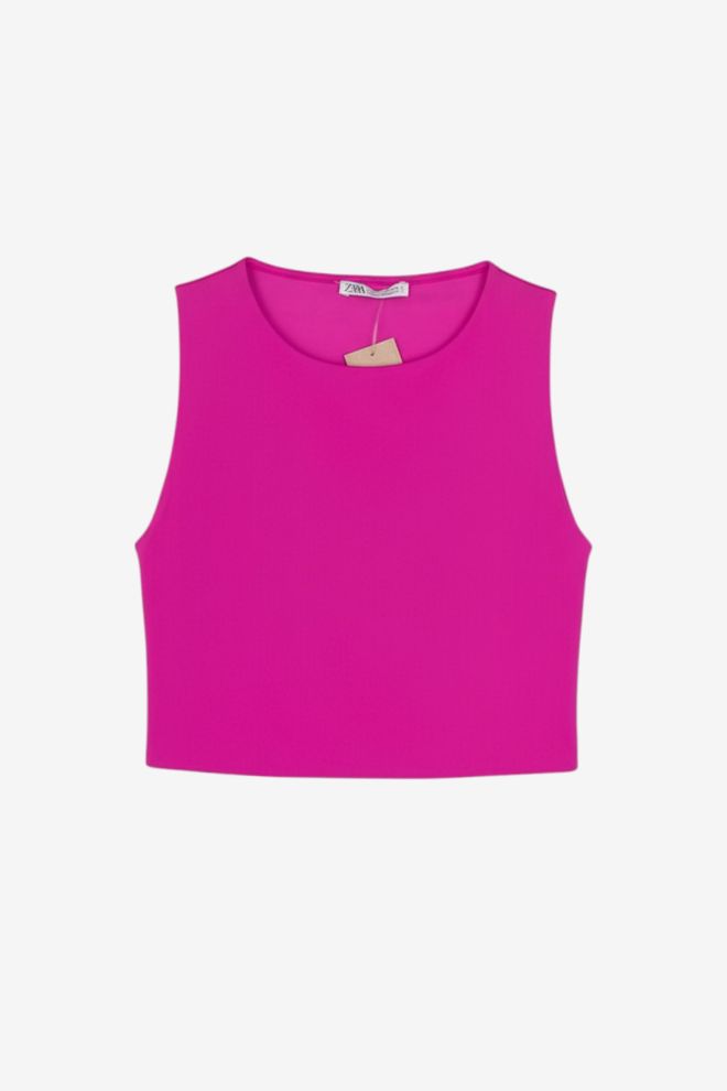 Top. Tela elastizada Talle de etiqueta/internacional: L. Composición: 82% poliamida y 1% elastano. Ancho: 46 cm, Largo: 52 cm | Los talles pueden variar por el calce o moldería de las marcas. Los talles expresados son los de etiqueta.