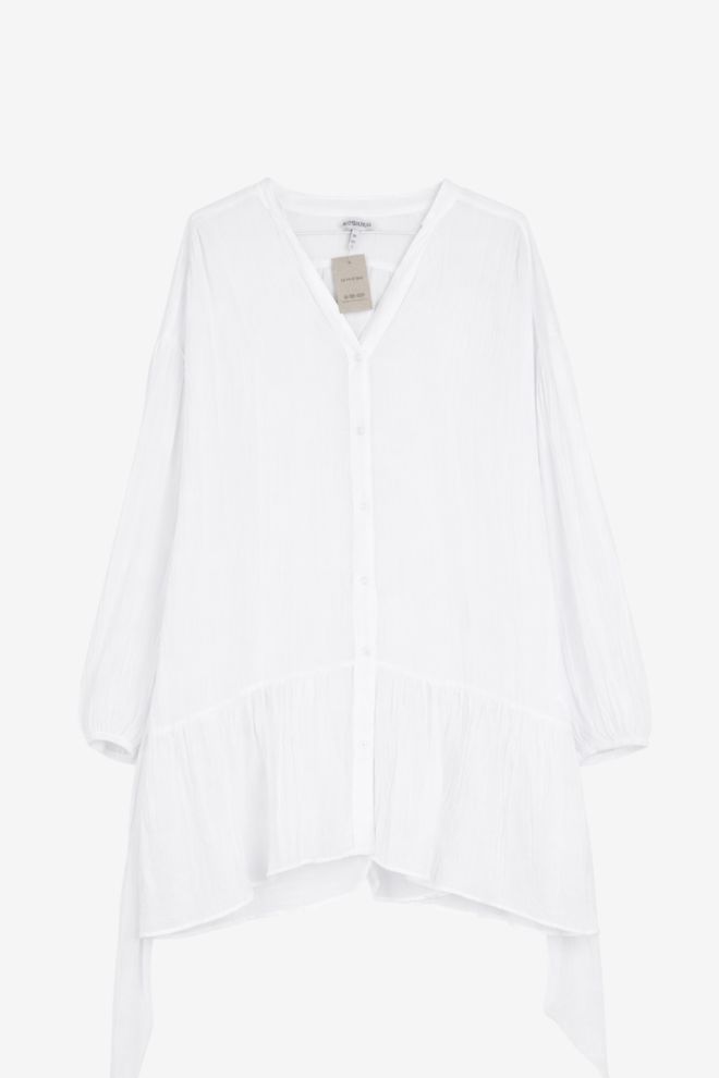 Corte en A. Tela rígida y traslúcida. Talle de etiqueta/internacional: 40/S. Composición: 100% poliéster. Ancho: 64 cm, Largo: 80 cm | Los talles pueden variar por el calce o moldería de las marcas. Los talles expresados son los de etiqueta.