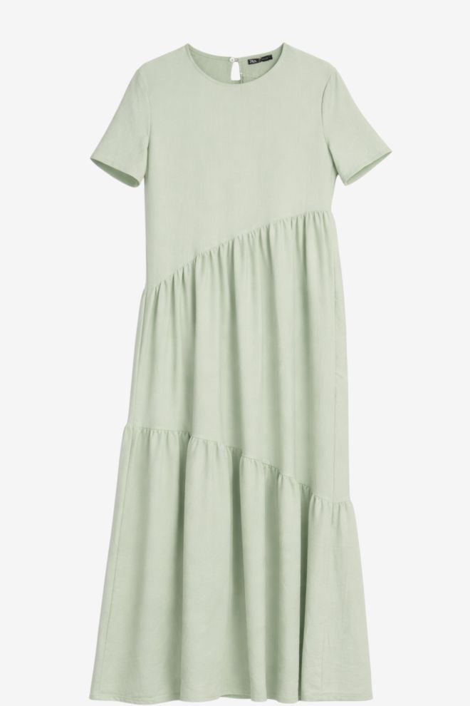Corte en A. Tela rígida. Talle de etiqueta/internacional: S. Ancho: 46 cm, Largo: 138 cm | Los talles pueden variar por el calce o moldería de las marcas. Los talles expresados son los de etiqueta.
