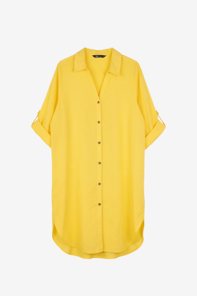 Corte recto. Tela rígida. Talle de etiqueta/internacional: XS. Composición: 55% algodón y 45% lino. Ancho: 54 cm, Largo: 100 cm | Los talles pueden variar por el calce o moldería de las marcas. Los talles expresados son los de etiqueta.
