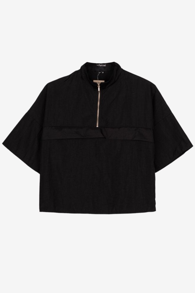 Corte boxy. Tela rígida. Talle de etiqueta/internacional: 2. Composición: 100% poliéster. Ancho: 48 cm, Largo: 46 cm | Los talles pueden variar por el calce o moldería de las marcas. Los talles expresados son los de etiqueta.