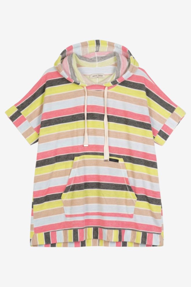 Corte oversize. Tela rígida. Talle de etiqueta/internacional: 1/38-40. Composición: 67% poliéster y otros. Ancho: 76 cm, Largo: 64 cm | Los talles pueden variar por el calce o moldería de las marcas. Los talles expresados son los de etiqueta.