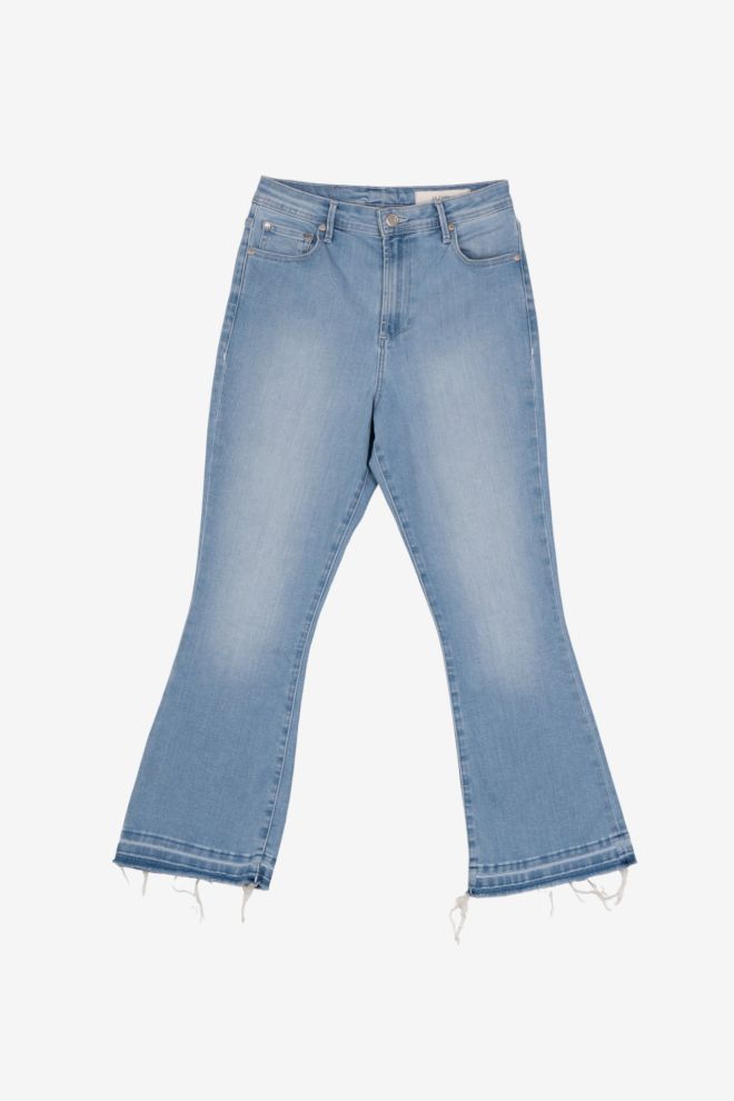 Talle alfabético: XS. Talle de etiqueta: 39/23. Tiro alto. Corte tipo flare. Tela rígida. Cintura: 34 cm. Cadera: 42 cm. |El calce puede variar por el tipo de corte. Los talles están convertidos a su equivalente en la tabla de talles de Europa.