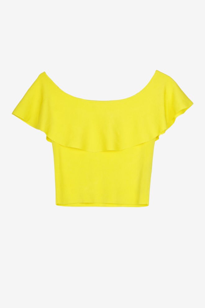Corte top. Tela elastizada. Talle de etiqueta/internacional: S. Composición: 80% viscosa y 20% nailon. Ancho: 32 cm, Largo: 38 cm | Los talles pueden variar por el calce o moldería de las marcas. Los talles expresados son los de etiqueta.