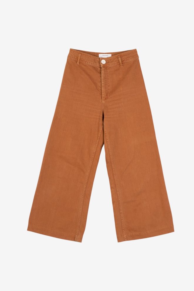 Talle alfabético: Small. Talle de etiqueta: 36. Tiro alto. Corte wide leg. Tela rígida. Cintura: 34 cm. Cadera: 44 cm. |El calce puede variar por el tipo de corte. Los talles están convertidos a su equivalente en la tabla de talles de Europa.