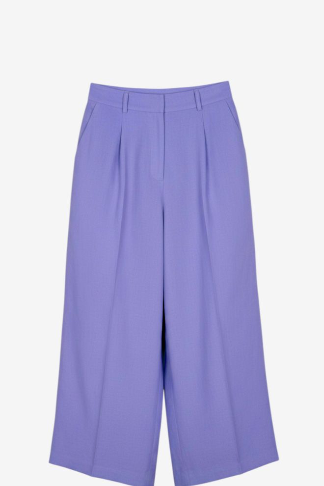 Talle alfabético: Small. Tiro alto. Corte sastrero. Tela rígida. Cintura: 34 cm. Cadera: 52 cm. | El calce puede variar por el tipo de corte. Los talles están convertidos a su equivalente en la tabla de talles de Europa.